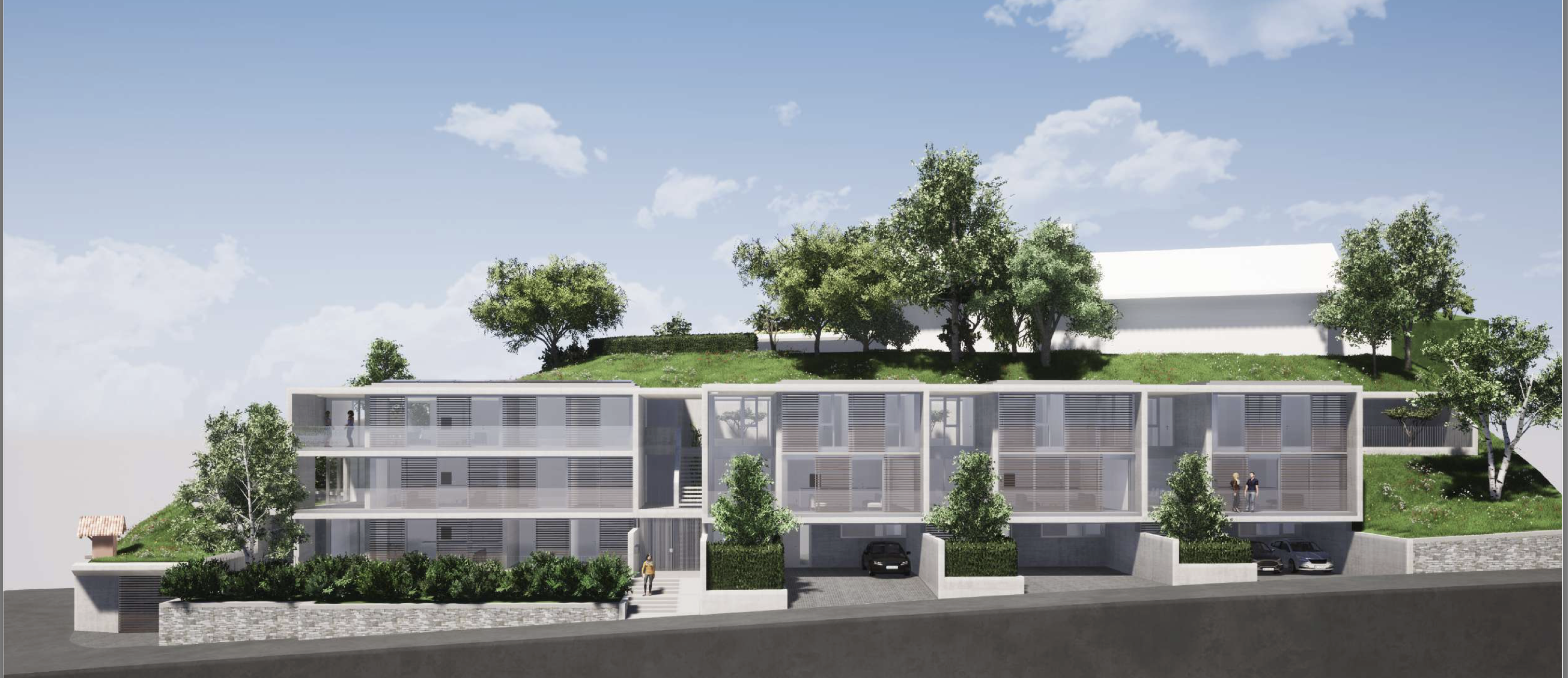 L’edificazione sarà composta da 3 appartamenti ognuno con proprio giardino e posti auto interni.